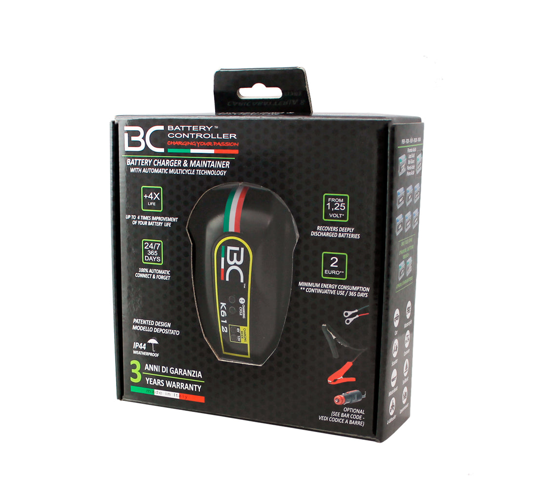 Dank seines funkenfesten Systems (Funkenschutz) und seines Schutzes gegen Überlastungen, Polaritätsumkehrungen und Kurzschlüsse gewährleistet der BC K612 ein hohes Maß an Schutz. Er wurde an allen Marken von Motorrädern und Rollern getestet und garantiert absolute Kompatibilität mit dem elektronisches System jedes Motorrads / Rollers.
