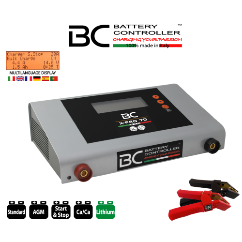 Der 12V/24V X-PRO 70 kombiniert herausragende Leistung mit einem kompakten, leichten und robusten Design, das bis ins kleinste Detail durchdacht ist, um die Arbeit des Profis komfortabel und effizient zu gestalten. BC X-PRO 70 hat eine maximale Stromstärke von 70 Amp.