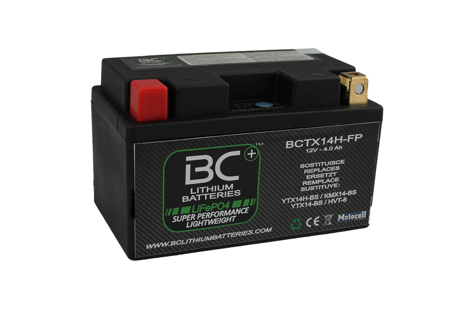 Die Lithium-Motorradbatterie BCTX14H-FP ersetzt die folgenden Blei-Säure-Batterien: YTX14H-BS - KMX14-BS - YTX14-BS - HVT-8
