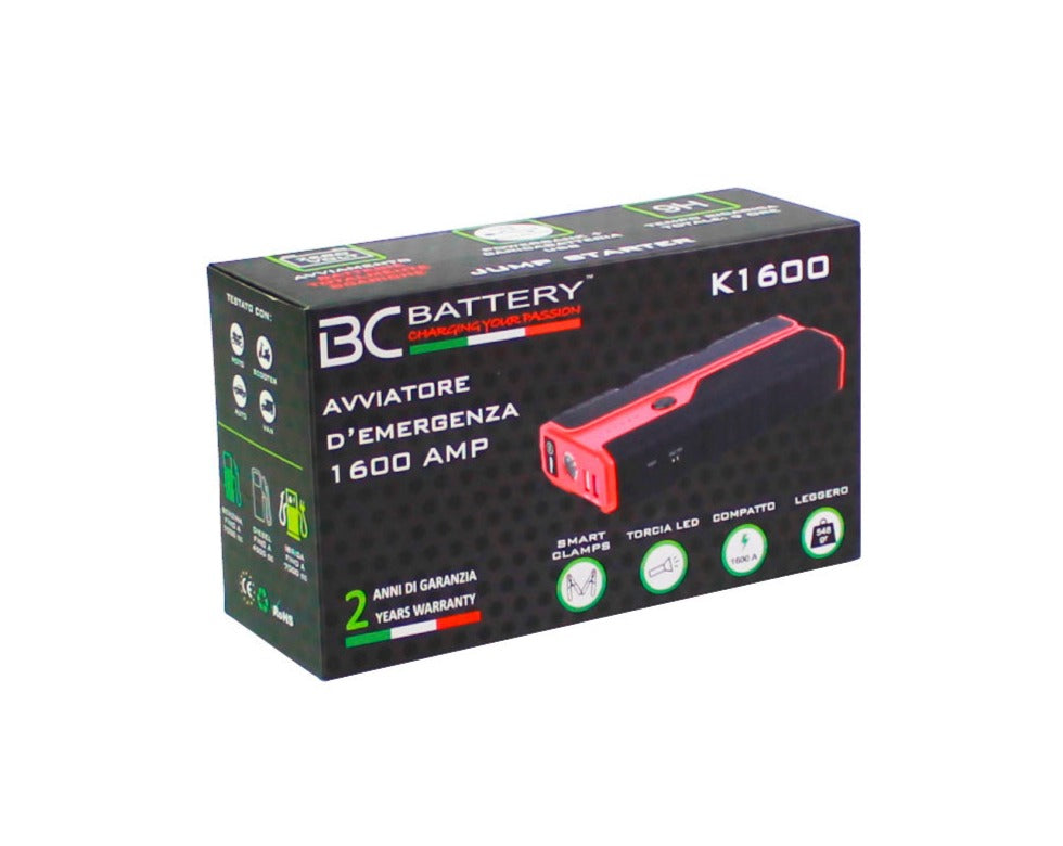 Mit dem BC K1600 ist das Risiko, mit Ihrem Fahrzeug liegen zu bleiben, nur noch eine ferne Erinnerung. Mit diesem Booster können Sie alle Fahrzeuge mit einem Hubraum von bis zu 7000cc für Benzin- und Hybridfahrzeuge oder bis zu 4500cc für Dieselfahrzeuge starten.