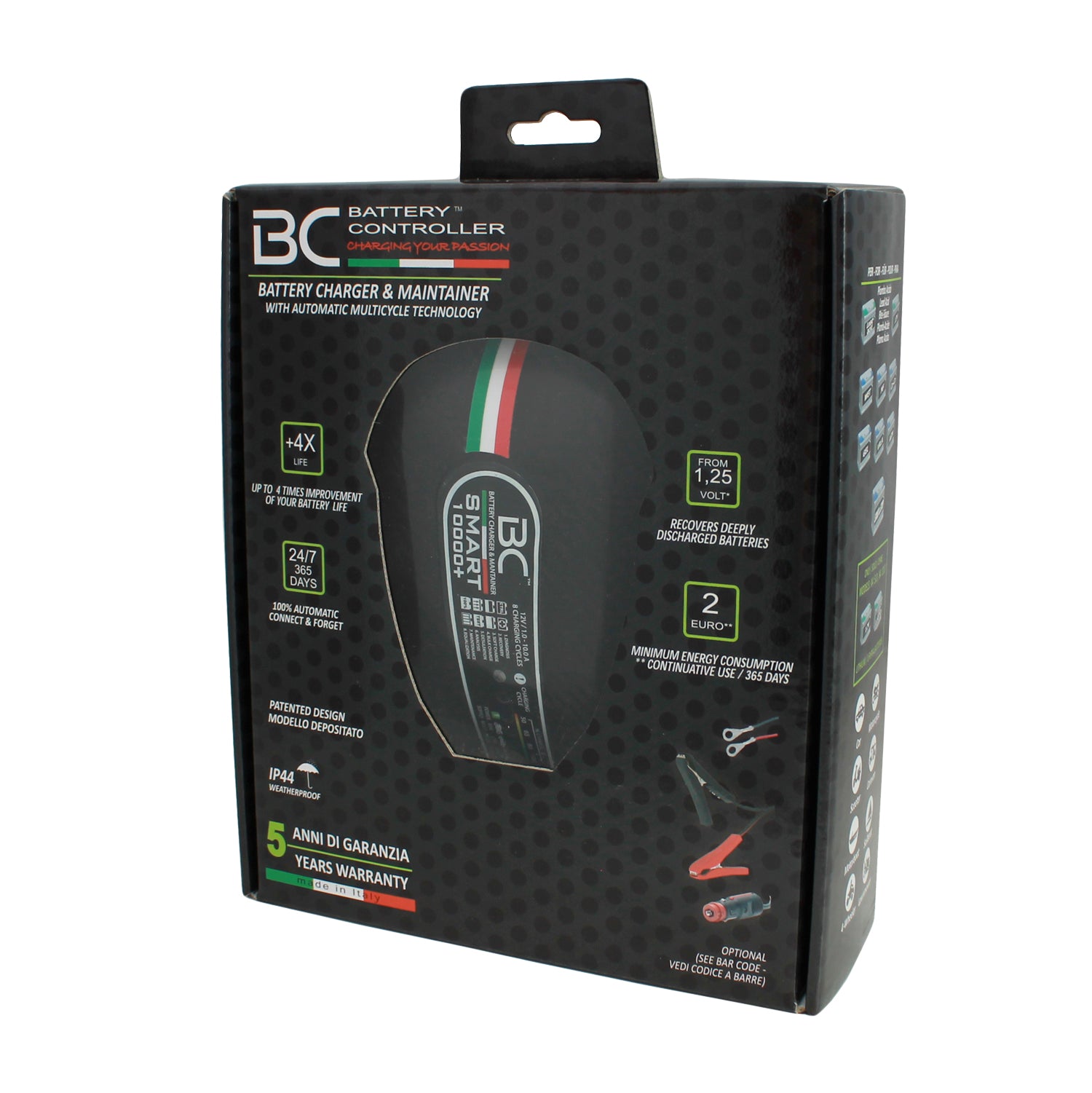 BC SMART 10000+ - FÜR WELCHE BATTERIENAlle Batterieladegeräte / -wartungen der BC Battery Controller-Reihe werden vollständig in Italien hergestellt und sind daher zu 100% in Italien hergestellt, der neuesten Generation und gehören zu den sichersten und fortschrittlichsten auf dem Markt. Sie führen 8 Ladezyklen vollautomatisch durch und sind für die perfekte Rückgewinnung, Aufladung, Entschwefelung sowie für die sehr langfristige Wartung von Starterbatterien an Autos, Motorrädern, Rollern, Wohnmobilen, Traktoren und Gartenfahrzeugen ausgelegt. Die BC-Lade- und Wartungstechnologie ist auch ideal für stationäre Batterien "von Hausalarmen". Tatsächlich können sie 365 Tage im Jahr angeschlossen bleiben und verbrauchen in diesem Fall bei kontinuierlicher Nutzung bis zu 2 Euro Strom.